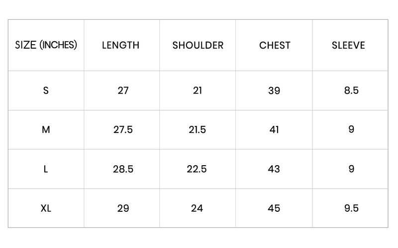 Oversized Fit Size Chart